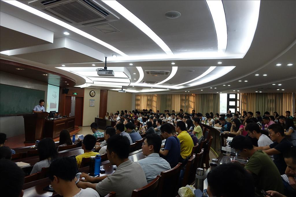 2015年9月18日星期五下午,经济发展与传统文化研究中心系列讲座第七讲于厦门大学经济楼N302举行。这一次,我们荣幸地邀请到了厦门大学道学与传统文化研究中心主任、哲学系教授、博士生导师黄永锋教授为两院学生作题为“《道德经》哲学思想略讲”的讲座。主持人张家麟教授介绍了黄教授的研究方向和主要学术贡献后,讲座正式进入主题。